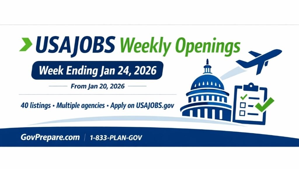 This roundup covers USAJOBS federal job announcements posted between January 20 and January 24, 2026. Each listing includes salary, who may apply, the announcement number, and the open period so you can act quickly.